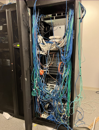 As you can see from the main picture that rack one, was a mess. So many cables that did not belong and were over ran or not plugged in correctly or labed wrong.